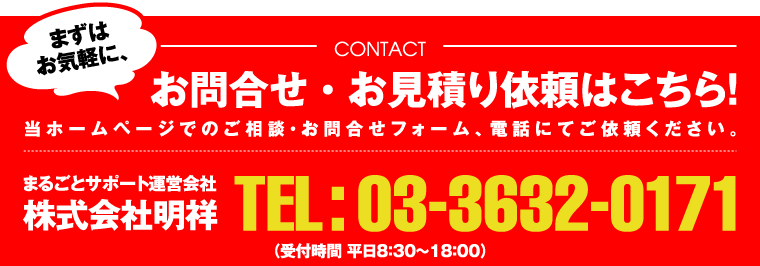 - お電話いただくか、お問い合わせフォームをご利用ください。お問い合わせフォームをご利用の場合は、時間を決めて弊社からご連絡をすることも可能ですので、遠慮なくその旨ご記入ください。